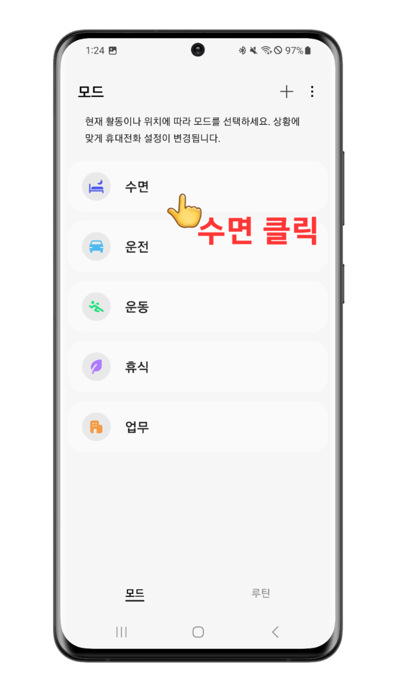 3. 수면 모드를 클릭!